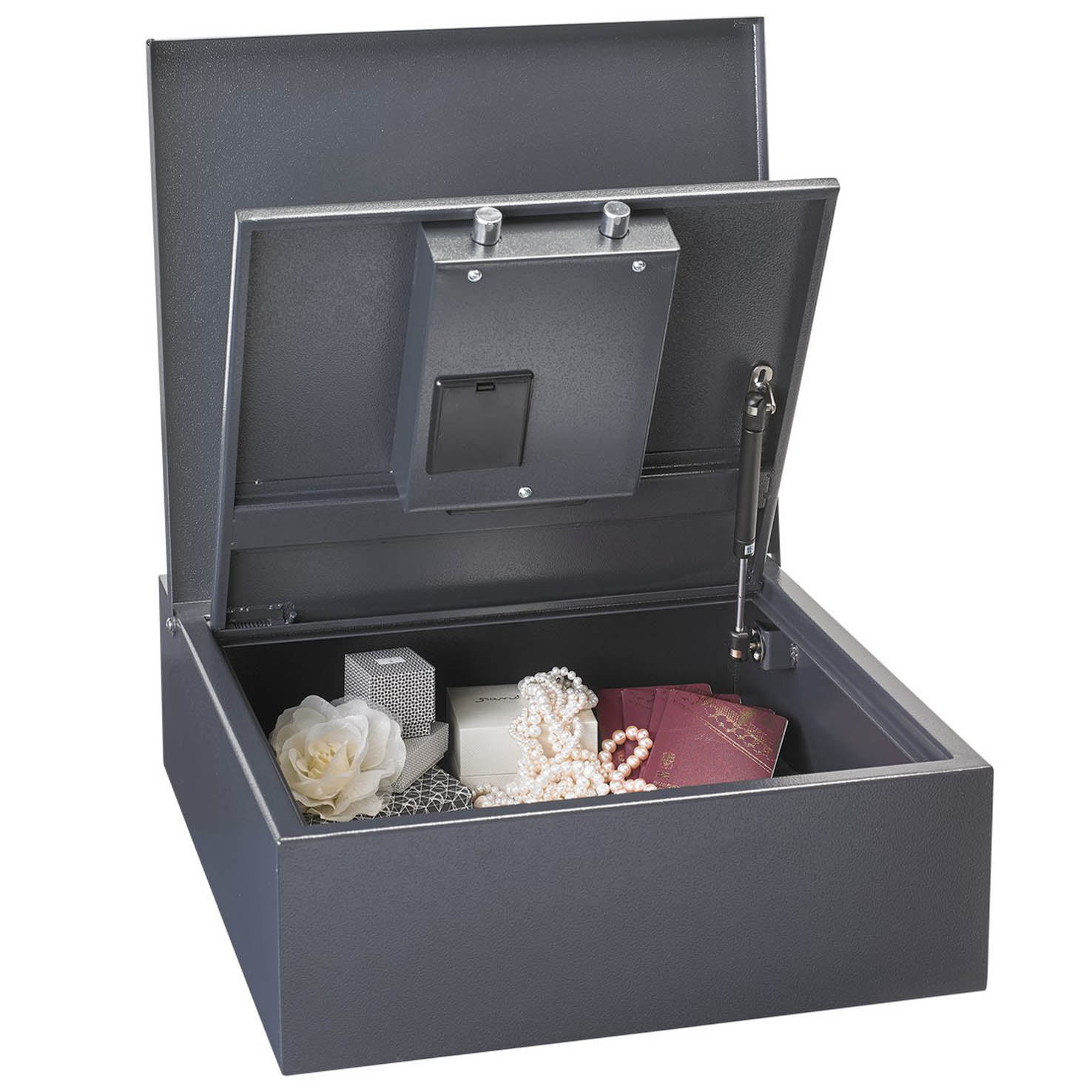 Благодарение на капака сейфът изглежда като кутия за обувки и крадецът може изобщо да не го забележи.